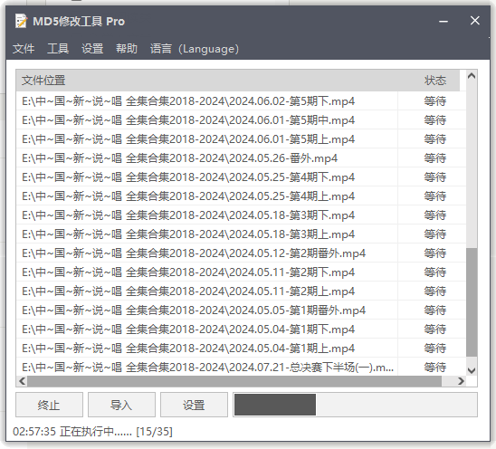 3、选择修改MD5,开始修改列表中文件的MD5值,结束后文件的MD5值,如果未勾选急速模式,会显示修改前和修改后的文件MD5值