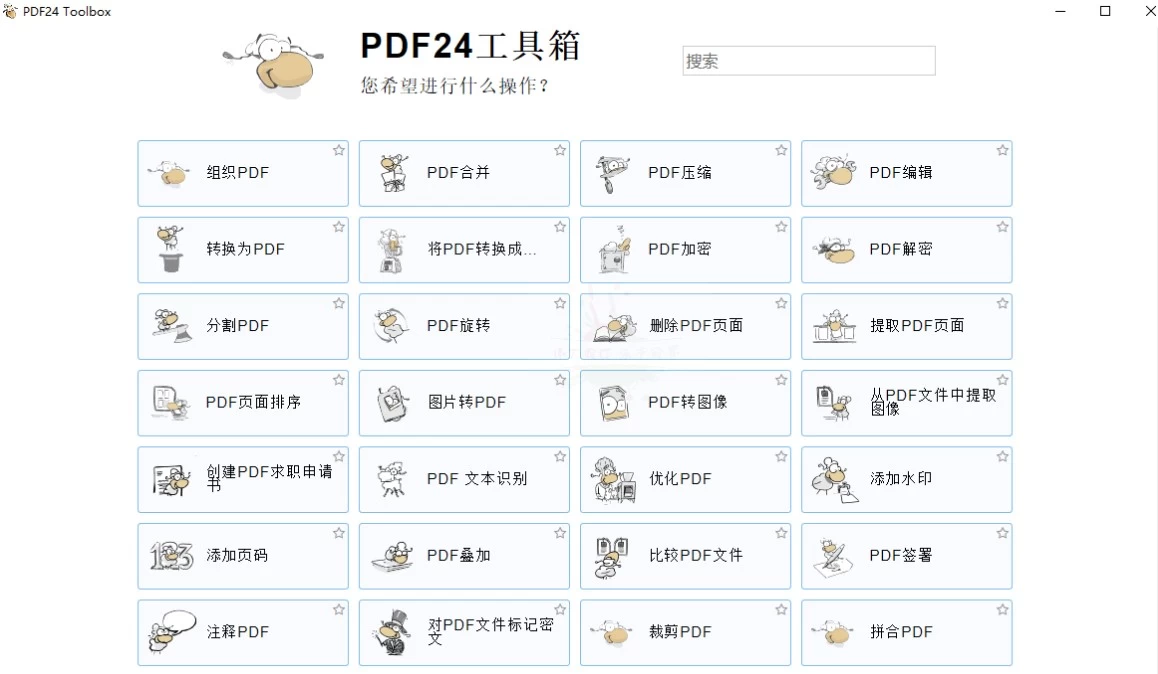 你可将要转成pdf格式的文件打印时选虚拟打印机PDF24,也可以直接将文件以拖拉方式拉进这软件的主视窗编辑区里,
